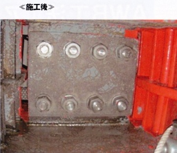 水圧100〜200Mpaという超高圧にて鉄部等の塗膜の除去(2種ケレン程度)を行うウォータージェット工法と強アルカリ電解水を組み合わせた工法でアルカリウォーターブラスト工法といい、水道水ではなく、強アルカリ電解水(PH12以上)を使用し、今まで錆の発生のために高圧洗浄工事が採用できなかった工事を可能にしました。